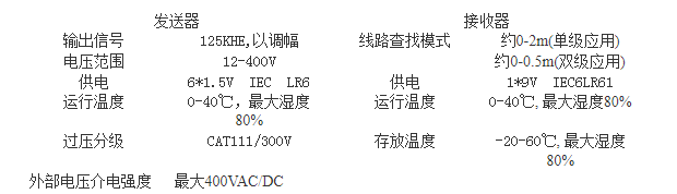 1件FLUKE專業(yè)尋線機(jī)及1件接收機(jī);4條測量導(dǎo)線,1份使用說明書;1只9V電池;6只1.5V電池;2個測試頭。