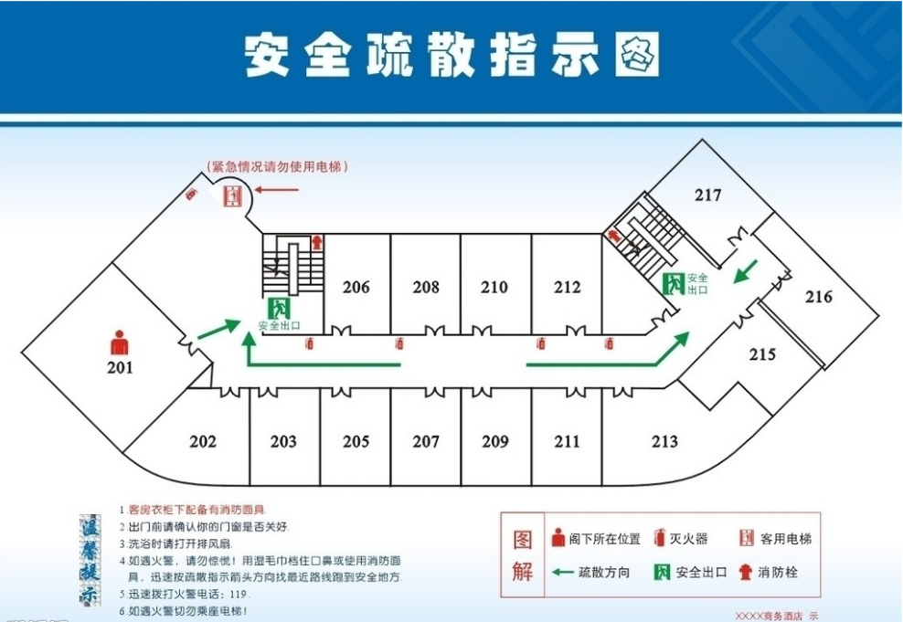 入住前請(qǐng)留意消防緊急疏散示意圖